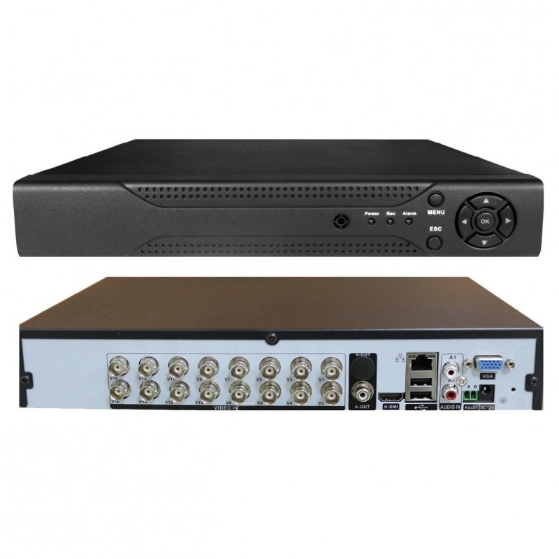 Il pannello posteriore di un DVR è la parte più complessa, ricco di prese e connettori. Scendendo negli aspetti tecnici è la parte che ospita gli ingressi video dedicati alle telecamere, gli ingressi audio per i microfoni ambientali, le uscite video per Tv, monitor e modulatori RF; le porte LAN (Ethernet) e USB ; i morsetti a molla dedicati ai sensori esterni, al controllo delle telecamere ed alle uscite allarme per un eventuale collegamento ad una centrale antifurto. All’interno viene installato l’Hard Disk per la memorizzazione delle immagini.